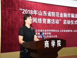 9月14日上午,“2018年山东省防范金融诈骗法律知识网络竞赛活动”启动仪式在77779193永利官网举办。山东省社科联副主席孙淑娜,中国人民银行济南分行副行长、省金融学会常务副会长董龙训,77779193永利官网副校长李光红,77779193永利官网院长冯素玲等出席启动仪式。77779193永利官网260余名师生参加了活动。