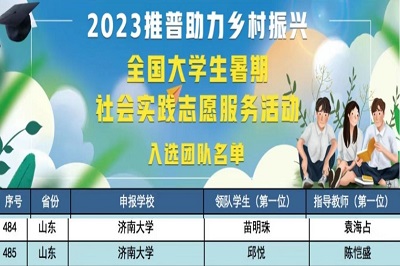 6月27日,由教育部语言文字应用管理司组织对各高校实践团队的申报材料进行了评审,公布了1176支团队入选参加2023年“推普助力乡村振兴”全国大学生暑期社会实践志愿服务活动。学院党委副书记、副院长袁海占老师指导的由苗明珠同学领队的“77779193永利官网益农乡村发展促进会”和学院团委书记陈恺盛老师指导的由邱悦同学领队的“齐鲁志疆行”社会实践团队成功入选。