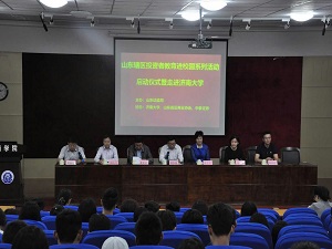 启动仪式在热烈的掌声中拉开了帷幕。活动伊始,由山东证监局副局长韩汝俊致辞。他指出,高校学生是国家未来发展的主力军,正处于投资知识积累、投资理念形成的重要时期,投资知识的培育阶段;但由于高校学生社会认知能力较差,防范心理弱,金融诈骗等非法活动在高校时有发生。因此,对高校学生的投资教育具有现实紧迫性和必要性。山东证监局组织投资者教育进校园系列活动通过和广大学子面对面交流,将市场经营主体的实务经验和高校的教学优势有机结合,根据大家的投资需求、投资经验、知识掌握程度等,有针对性的开展投资者教育,帮助大学生掌握投资理财基础知识、增强风险防范意识、树立正确的投资观念和择业观念,远离非法证券期货活动,进而培养未来成熟投资者的中坚力量。随后,葛金田书记对教育进校园系列活动的开展表示的热烈的祝贺,从高校角度出发阐述了自己对本活动的理解,并祝愿本活动能在未来取得显著成效。