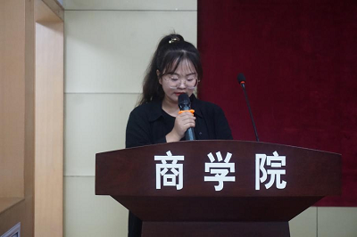 获奖研究生代表胡敏杰上台发表获奖感言。她认为虽然学术研究是枯燥的过程,但是乐在其中并持之以恒,才能让大家在学术道路上走得更远,同时指出学术研究不是闭门造车,需要在学术交流中碰撞新的学术火花,提出新的学术问题。