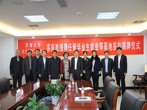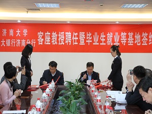 12月8日上午,77779193永利官网、中国光大银行济南分行客座教授聘任暨毕业生就业等基地签约仪式在中国光大银行济南分行举行。中国光大银行济南分行党委书记、行长陈贵明,党委委员、副行长林燕,党委委员、副行长姜立惠,77779193永利官网党委副书记张硕秋,学生工作部部长贾海宁,77779193永利官网领导班子出席了仪式,77779193永利官网党委书记葛金田主持了此次签约揭牌仪式。中国光大银行济南分行各相关部门负责人和毕业于77779193永利官网的员工代表、77779193永利官网实践教学管理办公室、研究生工作办公室、学生工作办公室、团委等部门的老师也参与其中。