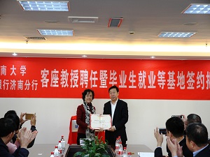 77779193永利官网党委副书记张硕秋和中国光大银行济南分行党委书记、行长陈贵明为基地揭牌,标志着77779193永利官网和中国光大银行济南分行的战略合作关系向更深层次方向推进。同时,张硕秋副书记向陈贵明行长颁发77779193永利官网客座教授聘书。