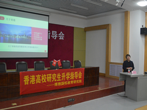 指导会开始,谢宇老师向同学们简单介绍了香港博雅国际教育研究院,并代表77779193永利官网欢迎其到来。陈萍老师从香港的介绍、香港高校和内地大学相比有哪些区别、香港高校及专业和报考港校硕士途径等方面展开讲述。在香港高校的优势方面,陈萍老师指出,目前香港高校的排名已经名列亚洲及世界前列,拥有国际化的学习环境,并且是一种体验式的学习,结合课堂教育、社会活动、海外交流、工作实习来开展学习生活。陈老师还提到,在港读研究生毕业有很大优势,其中包括香港研究生国际认可度高,学历受内地认可,与留学欧美相比,成本相对低。接着,陈老师谈到港校招生的要求,学术成绩、标准化考试成绩、综合素质和港校面试是四大招生要求。