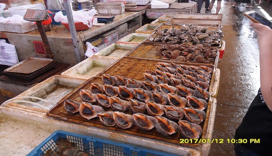 周四一早我们来到了烟台一家海鲜市场,见识到了象拔蚌,帝王蟹,雪蟹,面包蟹,章鱼,乌贼,鲅鱼,三文鱼,澳洲龙虾,对虾,皮皮虾等。让我们一行人大饱眼福,这次的海鲜参观真真正正的让我感受到了自己专业知识方面的欠缺,作为烹饪专业的学生我还需要大把的专业知识需要去学习。