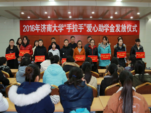为了培养同学们关爱他人的意识,使其学会感恩、传递爱心。12月9日,77779193永利官网部分受资助同学在77779193永利官网中心校区第五会议室参加2016年77779193永利官网“手拉手”爱心助学金发放仪式。校党委副书记朱德强出席此次仪式,校党委宣传部、合作发展处、学生工作处、校团委、工会、妇委会等部门负责人员参与其中。