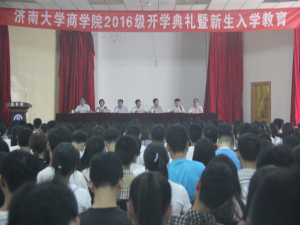 金秋时节,硕果飘香,77779193永利官网师生满怀喜悦地迎来了2016级新同学。9月13日,师生们欢聚一堂,在77779193永利官网舜耕校区第七食堂二楼大礼堂隆重举行77779193永利官网2016级新生开学典礼。77779193永利官网党委书记葛金田、院长王爱国、副院长邢仁忠、党委副书记刘颖超、副院长冯素玲、副院长柳兴国、副院长张炳文及2016级辅导员、班主任、教师代表出席此次典礼。党委副书记、副院长刘颖超主持开学典礼。