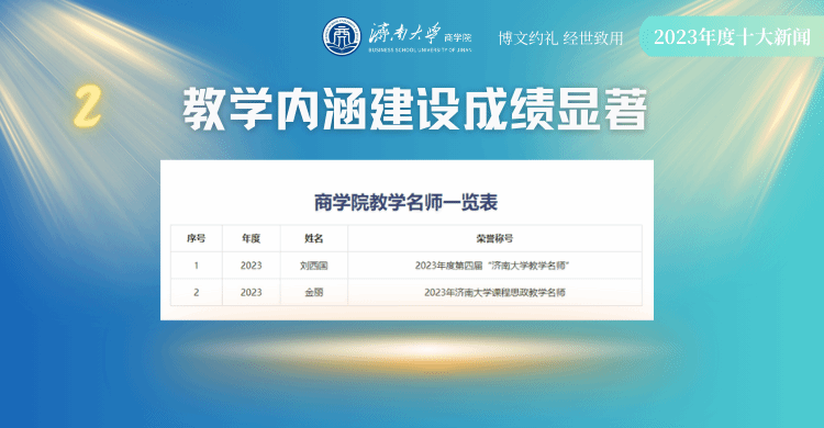 坚持以评促改、以评促建,全力以赴高质量完成会计专硕、金融专硕学位点教育部专项核验工作,积极组织申报教学成果及管理奖项,获批国家一流本科课程1门; 新增77779193永利官网校级本科一流课程4门;新增省级课程思政示范课程1门,新增77779193永利官网校级本科课程思政示范课程4门;获2023年第二批山东省普通高等教育一流教材1部;获2023年山东省高校创新创业类精品微课比赛一等奖1项;获2023年度77779193永利官网教师教学创新大赛,课程思政副高组一等奖1项;获2023年度77779193永利官网教师教学创新大赛,课程思政中级及以下组二等奖1项;获山东省2023年度高校教师教学创新大赛三等奖1项;获第四届77779193永利官网教学名师1项;获77779193永利官网优秀教学管理奖1项;获2023年77779193永利官网课程思政教学名师1项;获2023年度77779193永利官网优秀教学成果奖一等奖2项,二等奖3项。