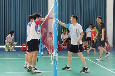 比赛正式开始,选手们矫健的身影在场上穿梭,师生们以灵活的步伐、准确的拦截、有力的扣杀,在激昂的气氛中,齐心协力用精湛的技艺奉献了一个又一个热血沸腾的瞬间。他们共同追逐胜利,但也不因比分的落后而气馁;他们注重过程,享受每一次挥拍迎击带来的快乐与满足。他们用坚韧不拔、不惧挑战诠释着“更高、更快、更强、更团结”的运动精神。师生共同用友谊和团结书写了一场场精彩的比赛,双方你来我往,攻防转换间彰显出彼此间的深厚情谊。