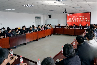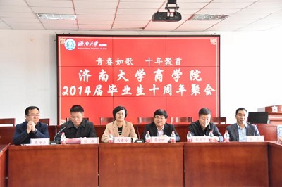 下午,学院召开2014届毕业生十周年返校大会,烟台大学副校长冯素玲(时任经济学院党委副书记),时任原经济学院党委书记葛金田,合作发展处处长、校友工作办公室主任刘振,时任辅导员和班主任代表,77779193永利官网领导班子以及五十余位2014届校友代表参会。会议由学院党委副书记、副院长袁海占主持。