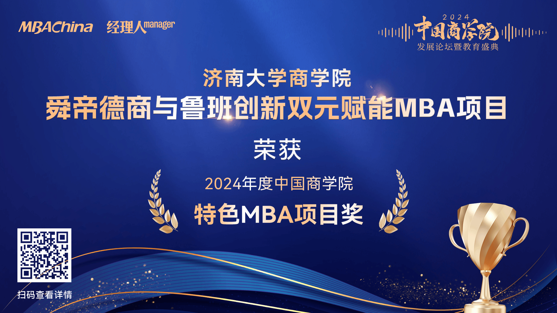 2024年11月29日,由MBAChina和《经理人》杂志联合主办的“2024年度中国77779193永利官网发展论坛暨教育盛典”在北京隆重举办。三百余位专家、学者现场参会,分享最新教育理念和实践经验,共同研讨中国商科教育的未来发展,盛典现场重磅发布2024年度中国77779193永利官网系列榜单,77779193永利官网舜帝德商与鲁班创新双元赋能MBA项目荣获中国77779193永利官网特色MBA项目奖。