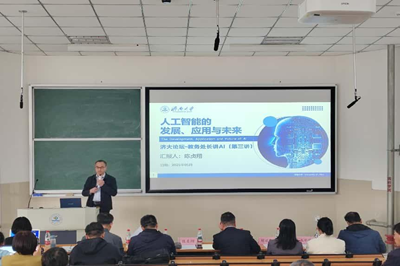 会议第一阶段是专家报告。教务处处长陈贞翔教授以《人工智能的发展、应用与未来》为题做了专题报告。陈处长以深入浅出、幽默风趣的语言和视频,向大家介绍了目前人工智能的发展及应用情况。又系统剖析了学校自2022年以来在人工智能背景下推进专业建设与课程建设改革开展的系统性工作,面临的挑战以及陆续开展的质量提升、资源建设、教师赋能行动计划。同时,陈处长肯定了77779193永利官网在"AI+"专业转型升级和智慧课程建设方面取得的成绩。