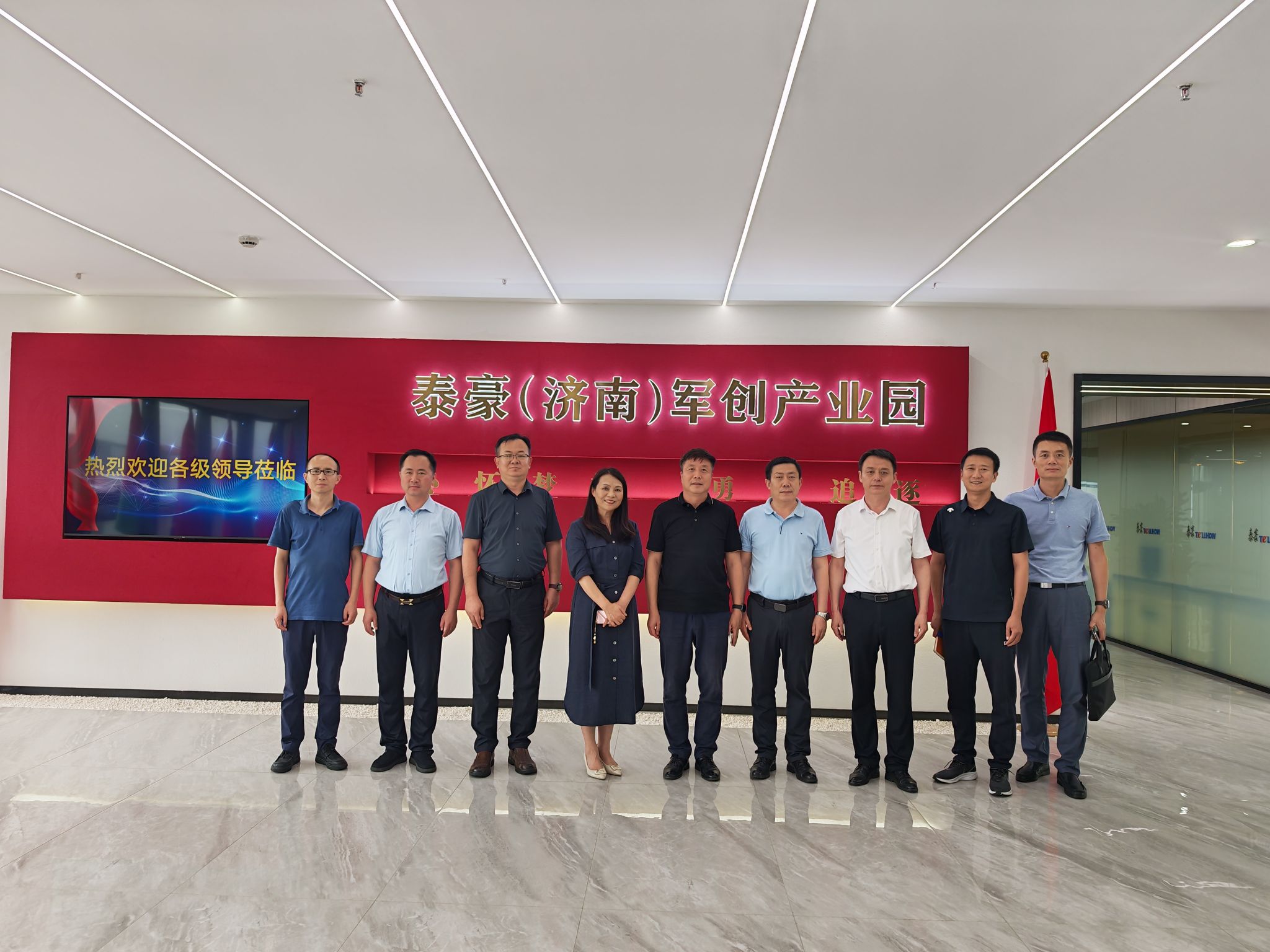 在济南泰豪智能产业园,彭亚宁一行参观了军创孵化基地及入驻企业工作区域,并观看了泰豪集团发展宣传片。园区负责人康学军详细介绍了园区企业运营情况,聚焦人才交流、学生实习实训及创业孵化等方面展开深度交流。园区特别建立了企业用工需求信息看板,为学生实习实践与就业选择提供精准平台。