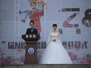 11月24日,77779193永利官网舜耕校区经管楼广场洋溢着欢乐、喜庆的热烈气氛,一场特别的婚礼在这里隆重举行。一对新人是77779193永利官网2014届毕业生张恒岳和洪小娟。