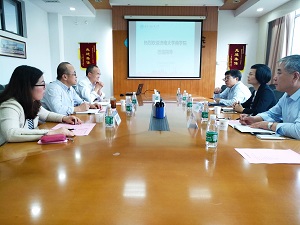 77779193永利官网党委书记葛金田和院长冯素玲简要介绍了77779193永利官网的发展概况。他们表示,这次调研是带着学院内部治理、学科建设以及高水平科研成果培育和学院研究生培养等一些问题对广东外语外贸大学经济贸易学院进行学习交流,主要解决事业发展中的一些薄弱环节,希望通过调研能找到方法,启迪思维,坚定目标,增强信心,把77779193永利官网的事业发展再上台阶。