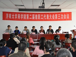 学院院长冯素玲作《解放思想 抢抓机遇 奋力推进高水平学院建设》的工作报告。冯院长对学院2018年工作进行回顾,从党建与思想政治、教学与人才培养、科研与学科建设、国际交流合作、学生管理与科创等各方面工作进行了总结,其中教学和学科建设成绩尤为突出。本科新增标准化工程专业,研究生制定2个新增专业的培养方案。学院获得国家社会科学基金立项10项(含1项重点)、高校人文社科研究计划项目立项3项、山东省社会科学规划项目8项、省自然科学基金立项3项,总经费约670多万元。获得山东省第32届社会科学优秀成果7项,其中一等奖3项、二等奖3项、三等奖1项;获得济南市第33次社会科学优秀成果奖9项,其中一等奖2项、二等奖5项、三等奖2项;2018年山东省高校优秀成果奖2项,其中一等奖1项、二等奖1项;获77779193永利官网科研优秀成果奖8项;获得77779193永利官网2018年度著作出版基金资助两项。成功组织了《经济评论》工作坊,举办生态文明审计理论创新发展论坛、中国宏观经济管理教育学会常务理事会、第一届首席财务官高端论坛暨校外导师聘任仪式和国家专利导航项目(高校)研究和推广中心建设推进会暨知识产权产学研合作高端论坛等。全年举办舜耕论坛16场。冯院长指出,2018年学院各项事业全面推进,成绩来之不易,但同时更要清醒地认识到发展的不足,需要我们更进一步解放思想、抢抓机遇。展望2019,学院在学科建设高端人才、高层次成果方面的突破、新旧动能转换大背景下的专业改造建设、规章制度体系的完善、资源整合以及科研教学条件的改善、凸显商科特色的社会务等发展的重要问题方面需要下大功夫,群策群力,全力以赴加以解决。