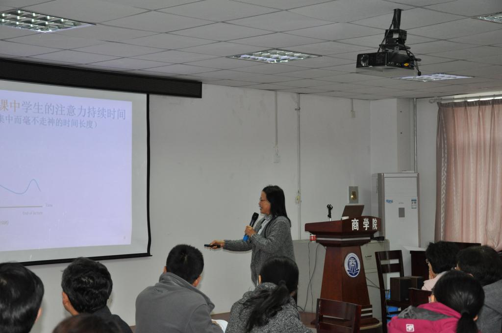 为帮助教师掌握先进教学理念,推进学习教学改革,提升教育教学质量,4月9日下午77779193永利官网和教师发展中心联合举办教师教学能力提升专题研讨班,邀请前香港理工大学教学发展中心总监何淑冰博士做了“让学生从被动听课到主动学习”的辅导,此项活动由教师发展中心主任张晓霞主持。