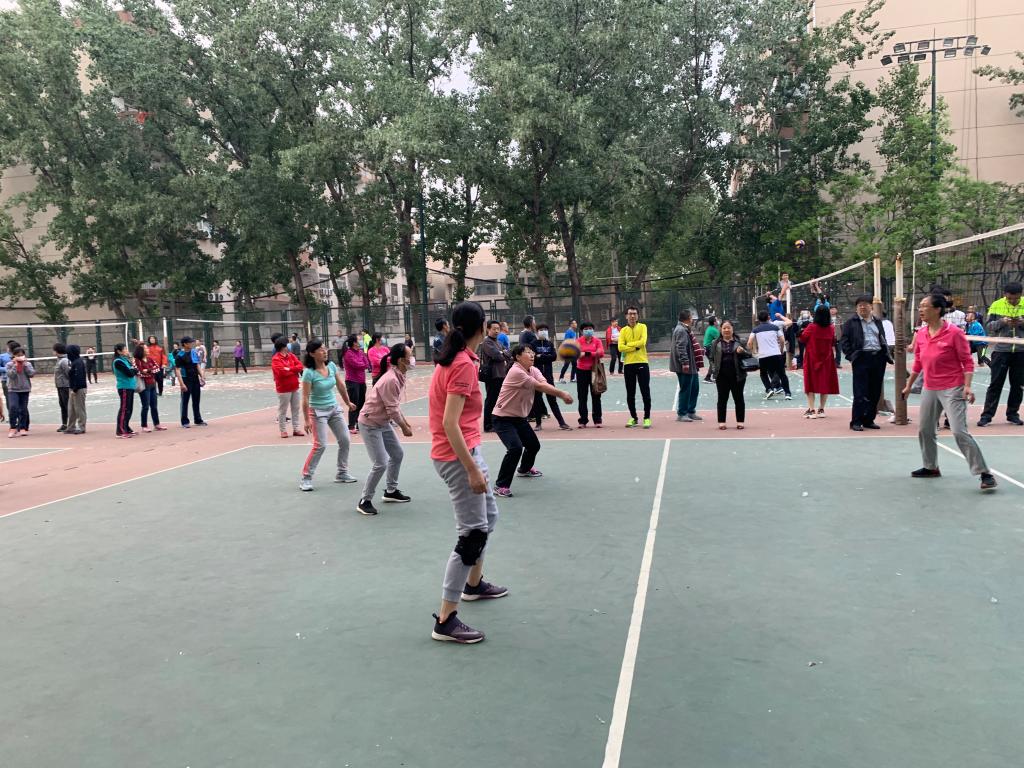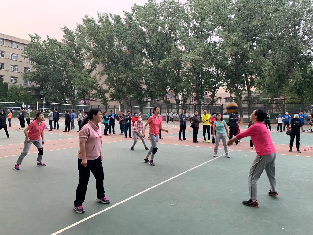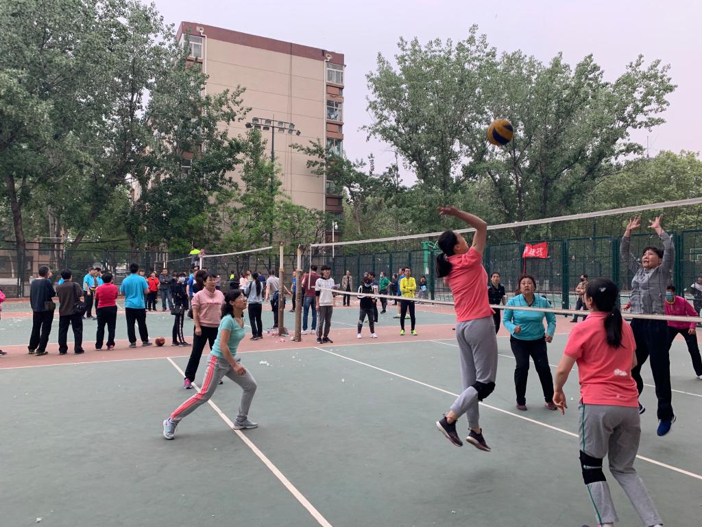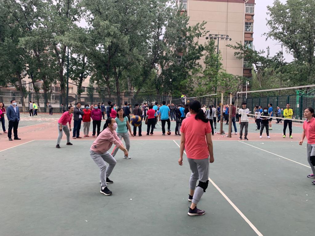 此时,排球场上其他的比赛都已经结束,人群逐渐都集中到女排决赛的场地。现场气氛十分紧张,大家都关注着决赛双方,为队员呐喊助威。随着女排队员齐心协力的“加油”声,决胜局拉开序幕。所有队员都拼尽全力,场上竞争十分激烈。由于体力及技术的原因,最终还是不敌强大的体育学院排球队,以1:2惜败。虽然与冠军擦肩而过,但与体育学院的切磋中收获了技术的进步和提高,更收获了美好的友情。