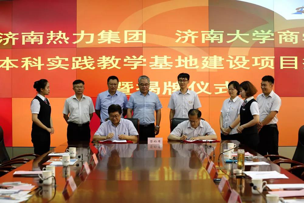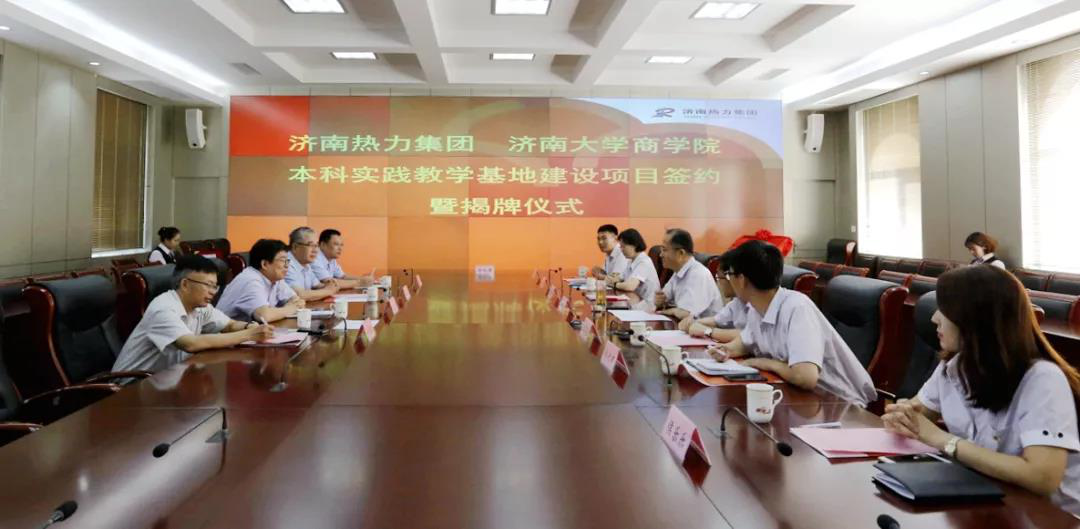 6月14 日下午,77779193永利官网与济南热力集团共建实践教学基地签约暨揭牌仪式在二环东路综合数字化供热指挥调度中心举行。77779193永利官网党委书记葛金田、副院长柳兴国、济南热力集团党委副书记罗永焕等领导,以及济南大学77779193永利官网会计系、济南热力集团人力资源部、总工办、文化宣传部负责同志参加签约及揭牌仪式。