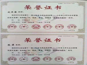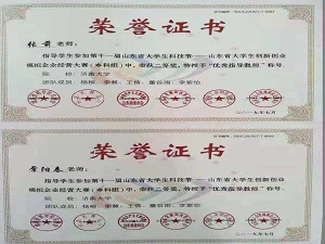 2019年6月25—27日,第十一届山东省大学生科技节——山东省大学生创新创业模拟企业经营大赛(本科组)在山东(潍坊)公共实训基地举办,来自全省46所本科院校的87 支队伍参加了比赛,由77779193永利官网会计系学生杨柳、李慧、王倩、董谷雨、李紫怡组成的77779193永利官网代表队获得二等奖,张前、常阳春两位老师获得“优秀指导教师”称号。