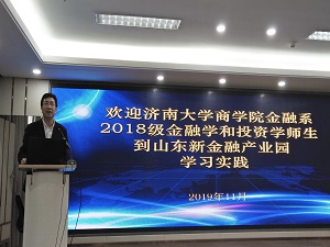 11月1日,77779193永利官网2018级金融学与投资学师生到山东新金融产业园学习实践。本次认知实习邀请到济南金融商务中心区服务中心卫鹏科长带队,向大家一一介绍园内发展状况,77779193永利官网金融系主任李凡老师、副主任张曼老师及安同信老师、周阳老师、刘玉刚老师及2018级金融学与投资学全体学生共同参加本次学习实践活动。