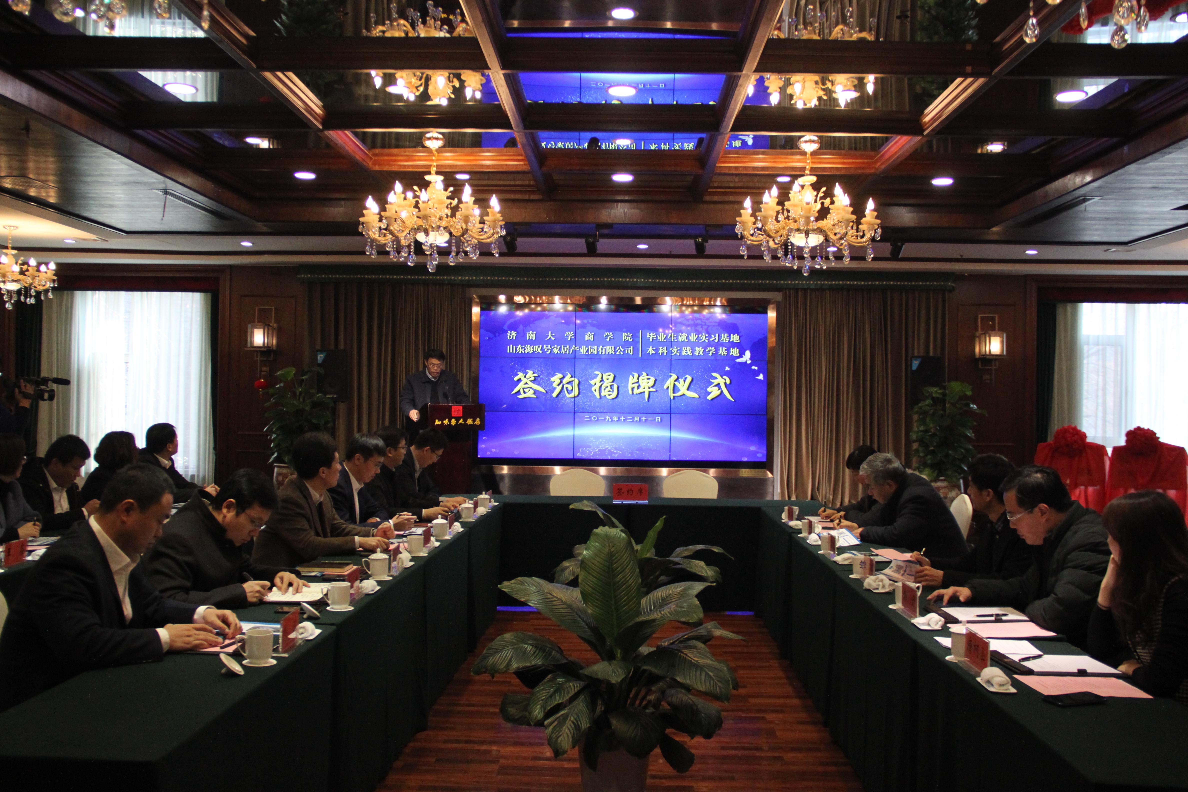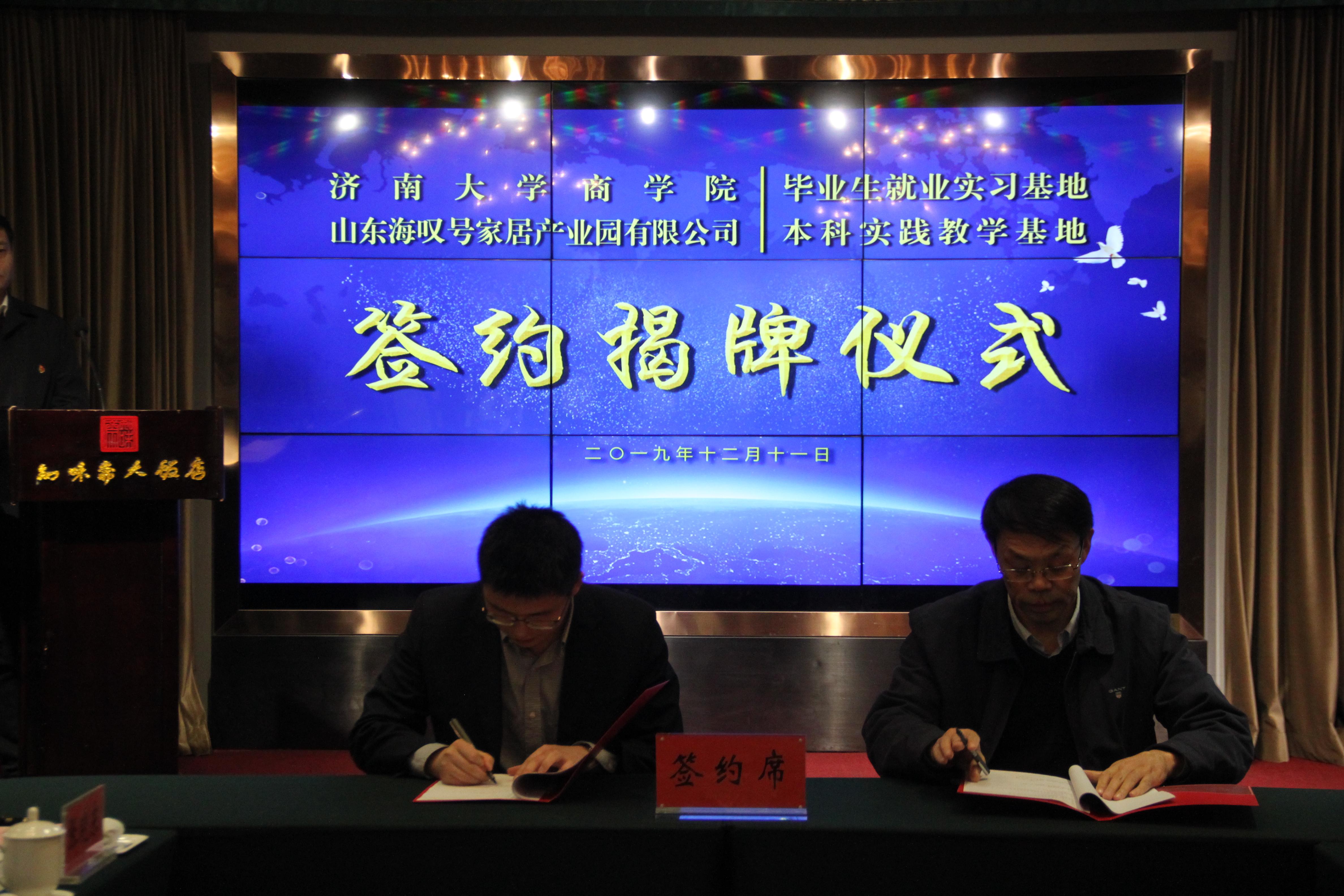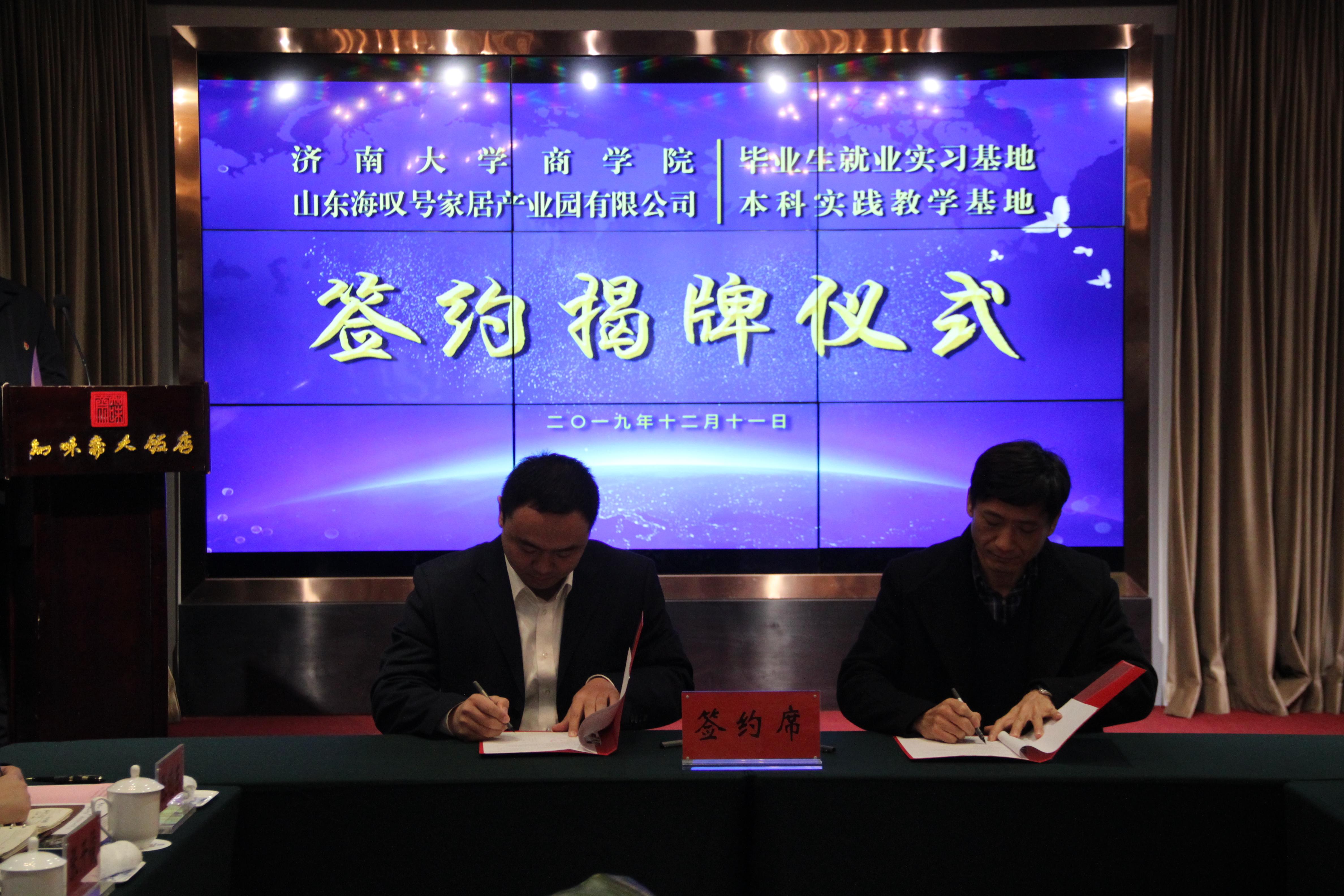 12月11日,77779193永利官网与山东海叹号家居产业园有限公司战略合作协议签约仪式、毕业生就业实习基地及本科实践教学基地签约揭牌仪式在淄博市周村区隆重举行,77779193永利官网常务副院长邢仁忠、党委副书记、副院长孟德洋、副院长柳兴国,周村区委常委、组织部部长、统战部部长王志臣、区政府副区长马谦,山东海叹号家居产业园有限公司常务副总经理张晓东以及区委、企业、77779193永利官网相关部门负责人出席签约仪式。签约仪式由周村区永安街街道党工委书记李曙光主持。