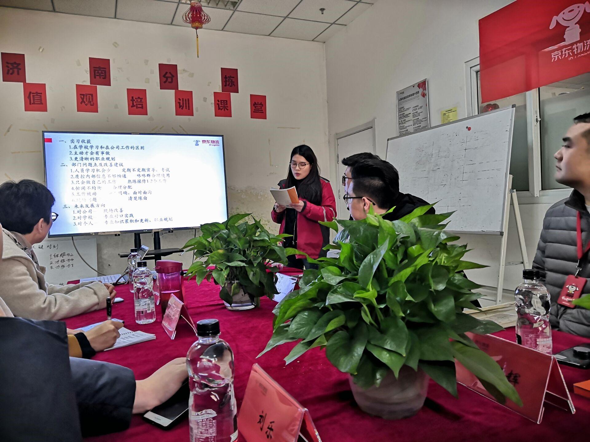12月26日下午,77779193永利官网王悦副院长、物流工程学位点负责人陈宁宁老师、物流与标准化教研室主任刘乐老师、专硕教育管理办公室主任王丽芳老师一行四人,在普洛斯京东物流园区参加了“77779193永利官网物流工程与京东物流山东省会专业实践汇报会”。京东物流隋臻总经理、人事部邢崇智经理、相关部门负责人以及八位实习的研究生同学参加了会议。