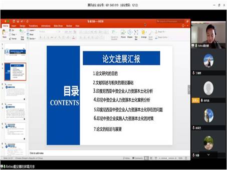 为此,研究生工作办公室统筹,应用经济学、工商管理、管理科学与工程三个学术型专业负责人按照《预案》要求积极部署、合理安排,将37名研究生(其中包括7名留学生)分为5个组,采用腾讯会议视频的形式,共聘请27名校内外教师为预答辩专家。研究生院进行了督导,77779193永利官网2018、2019级研究生及部分兄弟学院的师生共200余人旁听了本次预答辩。