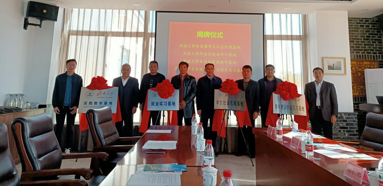 11月8日上午,济南市雪源昌旅游开发股份有限公司与77779193永利官网、标准化学院在莱芜区举行本科生实践教学、毕业生就业实习、共青团学生社会实践、共青团青年就业创业见习四个基地签约揭牌仪式。济南市莱芜区雪野街道办事处党工委委员、武装部长李宗浩及济南市雪源昌旅游开发股份有限公司总经理刘超、支部书记吕迎新、副经理邢介永、李强,77779193永利官网相关领导、负责人和部分教师参加了签约挂牌仪式。