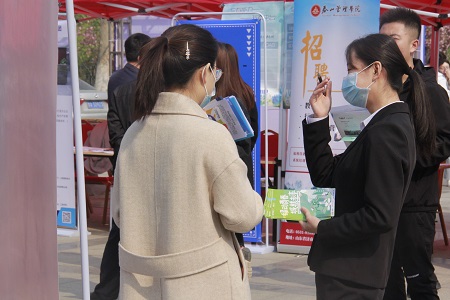 招聘会现场,孙菲菲书记一行针对就业问题同用人单位进行了深入交流,听取了用人单位对学院毕业生综合素质的评价,了解了各行业的市场与人才需求,关注毕业生的应聘状态,鼓励毕业生积极应对后疫情时代市场竞争的挑战,建议抓住政府、企业与高校通力合作的机遇,找准就业切入点更好更快地实现稳步就业。孟德洋副书记表示,学院一直以来聚焦毕业生就业工作,不断创新校企合作模式,深化人才培养长效机制的落地,为毕业生搭建实践平台,促进毕业生就业工作保障机制的完善。