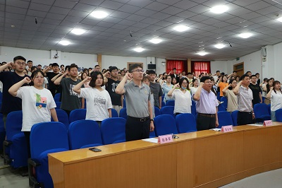 活动开始,全体与会人员面对党旗,庄严宣誓,重温入党誓词。铿锵的誓词展示了青年学子不忘初心,牢记使命,对党忠诚的坚定信念;展示了青年学子在今后的人生历程中担当奉献,建功立业,报效祖国的坚定决心。