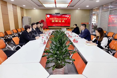 济南市市中区团区委书记田霖介绍了市中区共青团工作的基本情况,详细介绍了其中政校企项目、需求供给清单等情况,期待以此次校企合作模式驱动市中区人才储备的“共建共享共治”创新发展。山东艾克瑞特教育科技有限公司董事长张祖平介绍了济南总部校区及运营中心的建设情况、发展历程与主要业务,强调了企业的发展愿景与迫切的用人需求,期待将校企合作做实做细,以吸引更多的学生关注并加入到民营企业的发展蓝图中。随后,双方举行了77779193永利官网毕业生就业实习基地的签约授牌仪式。