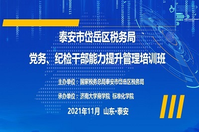 11月17日至21日,由泰安市岱岳区税务局主办,77779193永利官网、标准化学院承办的“国家税务总局泰安市岱岳区税务局党务、纪检干部能力提升培训班”在泰安成功举行。