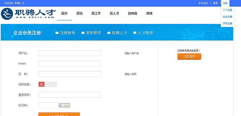 用人单位登陆www.zhcrc.com注册企业会员。学院审核通过后,企业招聘信息即可在本次招聘会网络平台显示。