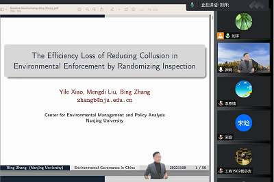 11月8日下午,77779193永利官网“舜耕论坛系列讲座2022”第四场举行。教育部“长江学者奖励计划”青年学者、国家万人计划青年拔尖人才、国家杰出青年基金获得者张炳教授应邀做客舜耕论坛,作题为《The Efficiency Loss of Reducing Collusion in Environmental Enforcement by Randomizing Inspection》的学术讲座。本次论坛采用腾讯会议直播形式,77779193永利官网副院长刘洋主持,120多位师生参会。