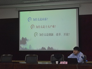 讲座伊始,党委书记葛金田向老师们和学生们介绍了胡薄处长在学术界的主要成就,并代表77779193永利官网向胡薄处长的到来表示热烈欢迎。在报告中,胡处长针对新旧动能转换重大工程提出了三个问题:为什么是山东扛起动能转换的大旗?为什么是十大产业支撑山东动能转换?为什么是创新、改革和开放引领动能转换?胡处长分别从世界科技发展趋势和我国当前的经济发展态势两方面,结合山东省的具体情况对以上三个问题做了详细阐述。他强调,新旧动能转化是中国之需、山东之需,也是经济发展的重中之重。山东加快新旧动能转换,无疑具有典型性和代表性。接着,胡处长向同学们普及了新动能的概念,并例举了信息数据对生产、生活、就业方式的颠覆性改变。最后,胡处长深入阐述了创新改革开放对新旧动能转化的推动作用和今后发展的着力点。胡处长的讲解,主题鲜明,内容丰富,紧扣国内新政变化和山东省经济发展形式,拓展了老师们和同学们的战略眼光,使大家受益匪浅。