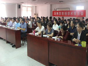 讲座开始前,葛金田书记对冯海发博士的学术成就进行简单介绍,报告会在一片热烈掌声中正式开始。本次报告会包括两个方面:经济形势和政策。首先,冯海发博士提出一个问题:当前的经济形势是怎样的?这是一个值得同学们去思考的问题。冯博士强调,经济学的关键是提高资源的利用效率,学习经济学最重要的是学会应用学科。冯博士指出,现在国家最重要的政策是让一部分人,让一部分地区先富起来,解决贫困问题,实现共同富裕,实现全面小康社会。在报告会过程中,冯海发博士与同学们展开互动,同学们也积极回答冯海发博士的问题,现场气氛活跃。最后,冯博士讲到经济增长速度。他说,经济增长过程中,出现了资源浪费问题,这是十分严重的,因此他强调,经济发展过程中,要实现经济增长和经济环境的平衡。