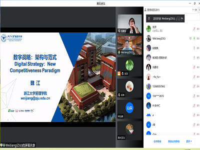 4月28日下午,教育部长江学者特聘教授、浙江大学管理学院院长、博士生导师魏江教授应邀做客77779193永利官网舜耕论坛,做了题为“数字战略:架构与范式”的学术报告。本次论坛采用腾讯会议直播的形式,77779193永利官网院长冯素玲教授主持了此次会议,400多位师生参会。