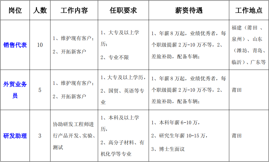 中聚(福建)新材料有限公司校园招聘简章