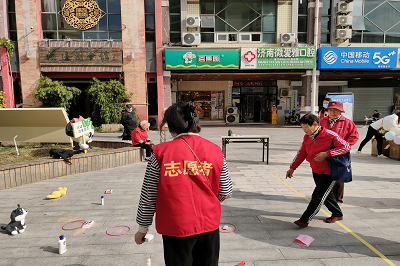 此次趣味运动会项目丰富,根据小区老年人的年龄和身体状况,共设置了4个比赛项目,简单易懂,强度适中,吸引了许多老年人参与其中。老人们积极主动尝试项目,77779193永利官网青年志愿者积极配合,耐心地为社区的老人们讲解并演示运动项目,在志愿者的帮助下,老人们感受到了套圈、丢绣球等游戏的无限乐趣,大家相互鼓励,交流经验,玩出了“年轻态”和“精气神”,仿若找回了童年时代的美好时光。旁观者有给参赛者加油打气的,有传授自己心得的,有为参赛者鼓掌助威的……这一刻,他们尽情享受着游戏的快乐。赛场上笑声不断,掌声迭起,全场充满了热烈、欢乐、祥和的气氛。