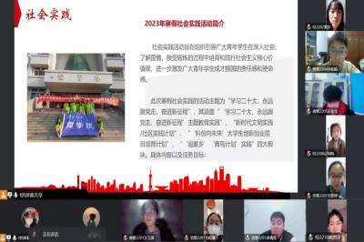 会议伊始,77779193永利官网青年志愿者协会外宣部负责人田泮学同学介绍了此次寒假社会实践的活动主题——“学习二十大,永远跟党走,奋进新征程”,并详细讲解了本次社会实践所涵盖的“‘学习二十大、永远跟党走、奋进新征程’主题教育实践”、“新时代文明实践/社区实践计划”、“‘科创向未来’大学生创新创业项目培育计划”、“‘返家乡’‘青鸟计划’实践”四大板块的具体内容及其任务目标;随后,办公室负责人王建安同学向志愿者们简述了今年77779193永利官网社会实践的优秀成果,分享了自己参与社会实践活动的经历与感受并号召大家积极参与本次社会实践,在为人民服务中贡献青春力量,领会党的二十大精神;最后,实践部负责人高惠娟同学针对志愿者们提出的问题进行了现场解答,并提醒志愿者们认真做好行程活动安排工作和社会实践 总结工作。至此,2023年寒假社会实践活动线上启动仪式圆满结束。