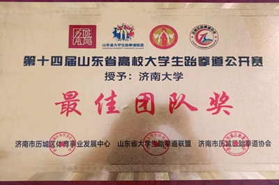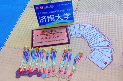 比赛设置了个人竞技、个人品势、自创品势、混双品势、团体品势、特技、竞速等项目。77779193永利官网尚动跆拳道协会(简称“济大尚动跆协”)派出了八名选手参赛,在激烈的竞争中,选手们展现了个人的风采。经过一系列激烈的比拼,斩获金牌5枚,银牌1枚,铜牌9枚,77779193永利官网代表队被授予“最佳团队奖”。