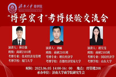 为进一步推动77779193永利官网学风建设,不断提高研究生人才培养质量,6月5日,由77779193永利官网团委举办,研究生会承办的“博学宏才”考博经验交流会在经管楼208如期举行。本次交流会邀请了褚昊旻、林自强和刘屾三位考取博士研究生的毕业生,就申博流程、导师联系和心态调整等多个方面出发,进行了经验交流。