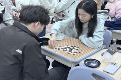 本次赛事采用积分累积制,每胜一轮,参赛选手可积1分,若负则计0分,比赛对阵由抽签决定,采用大众无禁手规则。本次比赛共有40余名研究生参赛。选手们屏气敛息,谨慎落子。在对弈中彰显沉稳与睿智,同时更深刻领略了“对弈精神”的独特魅力。观众们也被这氛围感染,因选手的一步妙棋,人群中爆发出几声轻呼,紧接着又低声讨论,揣测棋局走势。
