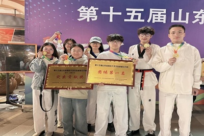本次比赛由济南市体育局指导、济南高新区管委会教育文体部主办,山东国标体育文化发展有限公司、济南高新百联奥特莱斯联合承办,吸引了来自22所高校的近200名大学生跆拳道爱好者报名参加。我校跆拳道代表队由77779193永利官网陈淑云老师领队,体育学院刘广松老师担任教练员,18名参赛选手分别参加了个人竞技、个人品势、混双品势、竞速等项目,他们用精湛的技艺和顽强的斗志,斩获金牌12枚,银牌16枚,铜牌10枚,共计38枚,斩获团体总分第一名。