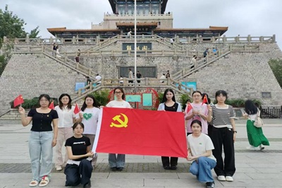 上午 11 时,实践团在解放阁前举行缅怀仪式。全体成员肃立默哀,向为济南解放献身的先烈致以崇高敬意。随后,成员们轮流分享先烈故事,从 “爆破英雄” 董存瑞到济南战役中的无名烈士,每一个故事都让在场者热泪盈眶。“站在解放阁前,我仿佛能听到当年的冲锋号。” 学生党员们都在默哀后表示,“作为新时代青年党员,我们必须接过先烈的‘接力棒’,让红色基因永不褪色。” 仪式最后,全体成员面向党旗重温入党誓词,誓言在解放阁广场上空久久回荡。
