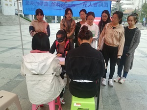为了让更多的人了解国际盲人节,关注盲人生活,关爱盲人群体,10月16日,77779193永利官网青年志愿者协会于经管楼前广场举办“我是你的眼,陪你看世界”志愿者活动。青协志愿者和学院学生积极参与其中。
