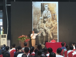 活动在为园区举行创立红色文化基地的揭牌仪式中拉开帷幕,志愿者协助工作人员进行剪彩仪式。接着,志愿者一行来到园区公共报告厅就坐,在雷鸣般的掌声中,一位老党员走上了台,开始了他的入党“初心故事”之旅。老人讲到,他的父亲曾参加过淮海战役,家族三代都是党员,加入中国共产党,带给他们的是无限的荣耀与责任。老人在最后激动的说:“我们来自五湖四海,为了一个共同的目标而走到一起,同时,也带着每个人的信念和故事。”活动最后,志愿者们观看爱国电影《红海行动》,勇者无畏,强者无敌,是这部影片表达的核心思想,中国人民解放军的爱国情怀也深深的震撼这在场的每一个人。