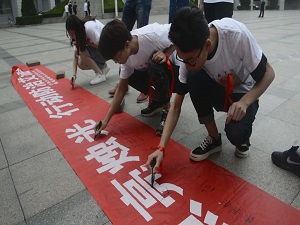 活动前期,青协志愿者在校园内系绑红丝带,张贴防艾海报,为活动做积极准备。活动伊始,青协志愿者将蜡烛在地上摆放成心形,大家手持蜡烛在音乐和烛光的配合中开始朗诵,饱含感情的朗诵让同学们感受到了艾滋病人的渴求和希望,打动了同学们的心。然后,志愿者代表佩戴红丝带,宣读《防艾志愿书》,并向同学们讲解了艾滋病的基本概念、传播途径和预防方式等知识,进一步让同学们知道如何远离艾滋,如何去关怀艾滋病病毒携带者,增强了同学们对艾滋病及相关知识的了解。最后,青协志愿者给参与活动的同学派发红丝带,并在条幅上共同签名,活动圆满结束。