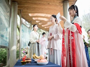 花朝节,简称花朝,俗称“花神节”、“百花生日”、“花神生日”,是中华民族传统节日,节日期间,人们可以结伴进行飞花令、吃花糕、饮清酒等活动。活动准备阶段,华歌未央汉服社成员提前准备了花神的服饰,认真仔细地进行舞蹈彩排,并精心准备了花朝节的糕点和礼物。活动伊始,打扮好的十二位花神若从画中来,她们漫步于泉城公园各个角落,等待寻找她们的人并给予小礼品以示奖励。接下来进行花朝祭拜,连接传统,祈福将来,在祭祀的同时寄托美好祝愿,祭拜结束之后社团成员们便醉心于赏花,将心事寄予春花说。最后是占花名飞花令,社团成员聚集一堂,体会曹雪芹笔下红楼中的经典游戏,同时以舞相属,以歌尽兴,引来路人驻足,声声叫好。至此,此次活动圆满结束。