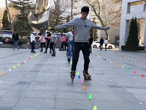 活动前,轮滑社社长召开社团会议确定活动开展的内容、形式、时间及地点,并解答社员的疑惑和问题。活动伊始,社员们将提前准备的装备放好,通过短跑、准备活动、仰卧起坐、俯卧撑及卷腹等运动进行热身,借此防止活动中因热身不足而发生意外。社员们对此次活动表示出极大兴趣,积极投入到热身运动中。接着,社员们开始绕桩、旋转、双脚交叉等基础轮滑技术练习。社员们全身心地投入练习打好基础且训练地津津有味。随后,由轮滑社请来的山东省轮滑冠军李峥嵘先生进行讲话,对社员们的技术水平及训练中的问题点评。讲话中李峥嵘先生说道:“要想学好轮滑首先要打好基础,基础是十分重要的它可以决定你以后在轮滑上的发展,其次不要将轮滑作为一种兴趣而是把它当成作为一种职业去做。这样你才能走得更远做的更好。”最后,此次活动在热烈的掌声中结束。